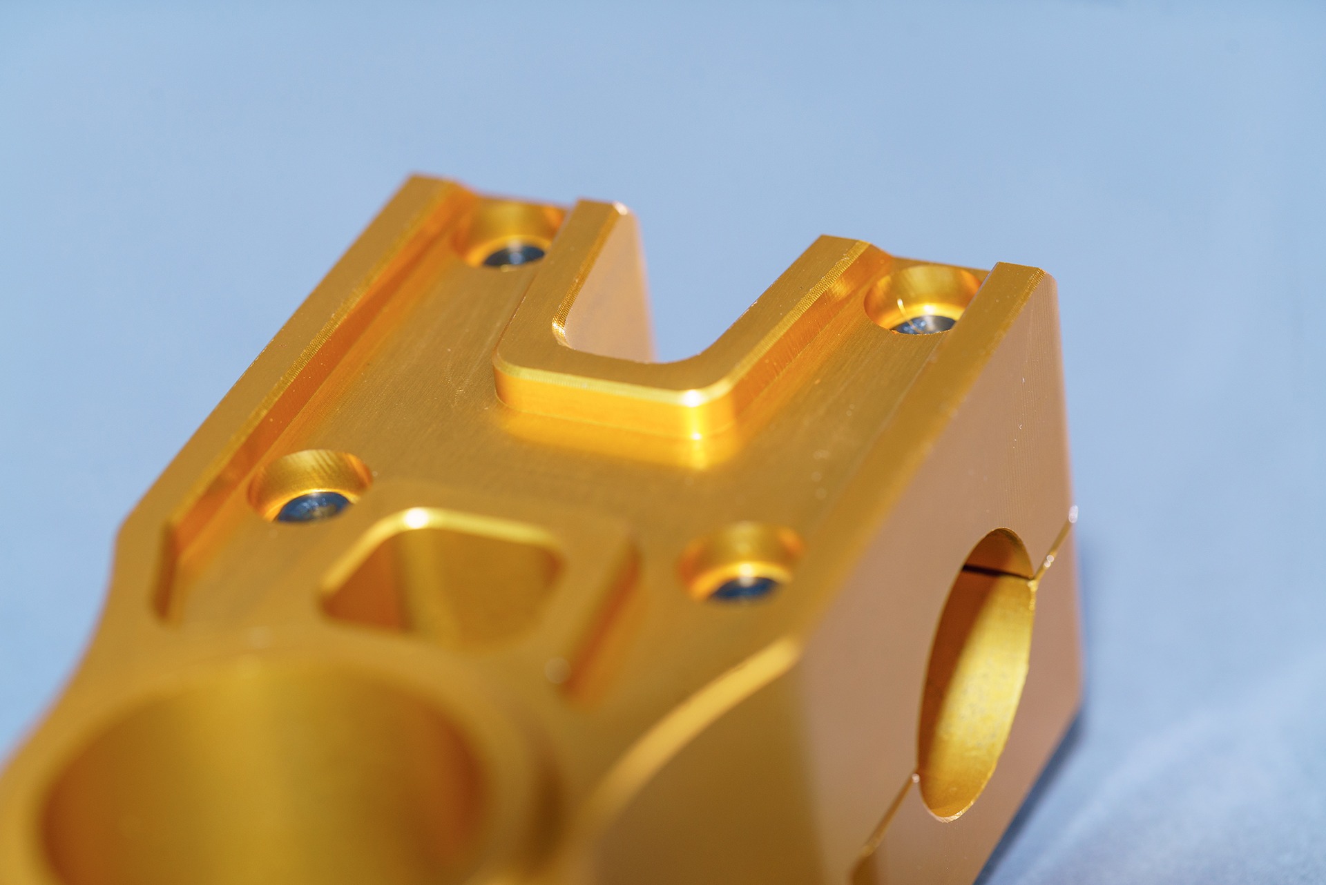 Designed and made in the USA, CNC machined from high quality aluminium. Double pinch bolts for a strong clamp. Top load style with 4 bolts. Available in 1” mini and 1 1/8” pro sizes.