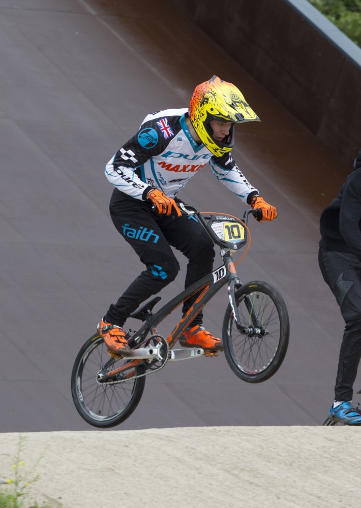 Sunday was a better day to start with and my gates were popping. I was feeling quietly confident going into the semi and I was winning all the way to the last straight. Unfortunately I could feel Oliver about to overtake me and I wanted to win the semi so much I didn’t slow down enough to get through the last jump safely. The roller before it went wrong and I was almost over the bars before I hit the last jump which spat me over the bars properly. I was gutted not to make the final but I was in pain too, my back and head hurt. Mum convinced me to have a go at the B final and I did but it was too painful to pedal hard so I shut it down and finished 7th. Until the crash i was happy with my races and felt that I was getting back to realising my potential again. Especially on such a technically demanding track.,