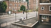 Unfortunately Dale had to leave after the second day. He pulled a pretty hefty drop at Wandsworth roundabout and damaged his already beaten up thumb pretty bad. About eight weeks prior to London Calling, Dale broke his forearm in two places and dislocated his wrist, riding at the level he was riding on the trip after suffering such a severe injury goes to show how much of bad ass he is! Here he is in an estate somewhere not too far from the flat with a hop over drop down nose manny to hop out. What you can't see that in the photo is how bad the surface is to be doing a noz on. Rough!