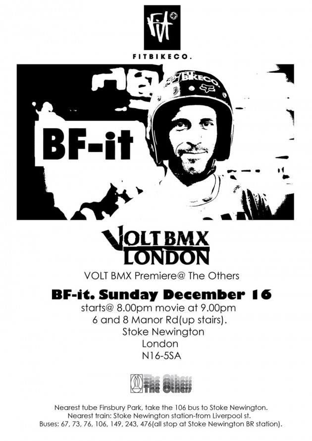 Volt BMX are holding a premiere in London this coming Sunday for the BF-IT documentary that was shown at Texas Toast a few months ago. Make sure you check it out if you’re in the area. BF is one the greatest legends in BMX. Check the trailer below if you’ve not seen it yet… the quote from Mcgoo at the end is spot on! Looking forward to this!