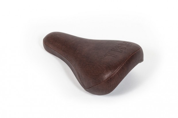 Here we have Mutiny’s Mid Tripod seat which compliments the Tripod Post we featured in issue 181. It’s designed so that you only have to use a single bolt on the underside of the seat to attach the seat in one of two angles. This ‘mid’ seat features slim foam padding for a low profile look, but is still nice and comfortable. Together with the Tripod post this will be a very strong/light combo and we’re starting to see more and more riders rocking this setup. The durable synthetic leather cover has a debossed MTNY logo and looks great in both Brown or Black.