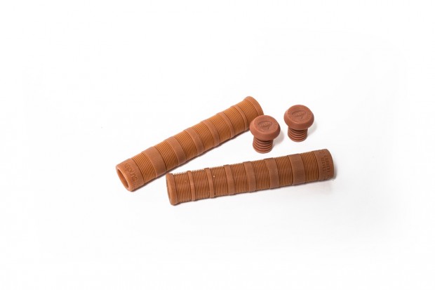 They’re thin, flangeless and ribbed for her pleasure! (Just for comfort and extra grip really). His sig grips are made out of a super-soft rubber compound, which Garret picked out himself. The grips are 160mm in length, 28mm thick at the skinny sections and 30mm at the ends. They come in all sorts of funky colours, but the tan ones we have featured will look great on pretty much any ride.