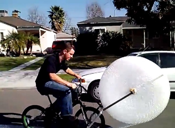 Enjoy popping bubble wrap? Like riding bikes? We have the answer to all of your needs! The Bubblewrap Bike. Getting some speed up on this thing would sound like a million AK-47’s firing at once. So rad!