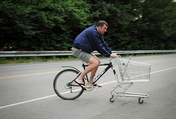 Trips down to your local supermarket will never be boring again with one of these bike/trolley combos. I don’t know why but I REALLY wanna hit a ramp with this thing and see what happens.