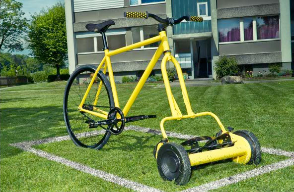 Immediately I thought to myself, “Why the hell have I never thought of this?” – Imagine rather than pushing your mower about if you could pedal it instead! Great workout, just wouldn’t recommend barspins!