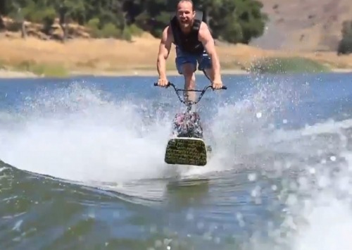Ryan Nyquist again? This time it’s a hybrid cross between a BMX & Wakeboard. I can imagine this being bucket loads of fun on the water and I’m sure you’d all love to give this one a shot. Sending a barrel roll would be pretty intense I bet.