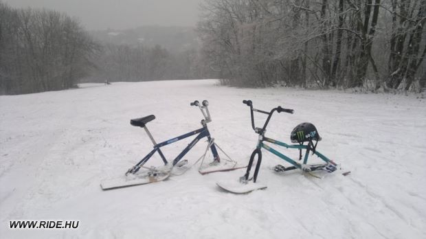 Apologies for the small picture but I thought these two were pretty rad. Another BMX/MTB mashup but with snowboards as a base and some supports to keep it all moving the way it should when tackling those slopes!