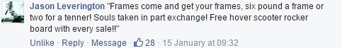 Also another comment on the same post made me laugh, was probably the “souls taken in part exchange” bit that got me. hahaha Jason Leverington, you ledge!