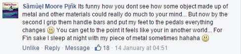I’m not gonna lie, I see shit-loads of these ‘inspirational’ or ‘motivational’ pictures dotted about the internet relating to BMX and most of them make me wanna puke. I love BMX but sometimes people just talk a load of bollocks on these things. This is the only one that I thought was pretty cool and very true so I posted it. Samuel‘s response was bang on too!