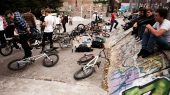 Well today all the teams met up in Bristol to kick off the Ride to Glory. Everybody hung out, got their books with the rules and challenges, sabotaged a few competitors’ bikes, and engaged in a heated highest bunnyhop / lowest ride-under contest. Afterwards, I got in an unnecessarily tall and strangely uncomfortable van with the Odyssey team and TM Jim Cielencki behind the wheel (and sometimes on the wrong side of the road). We ate some food and then pedaled around Bristol for a bit before heading to wherever the hell we are now to sleep. That’s it!
