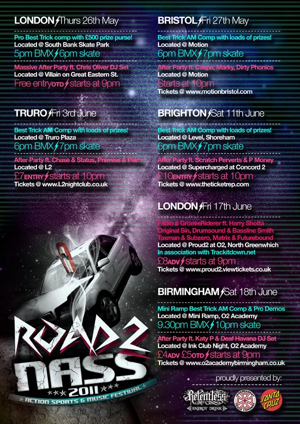 Relentless Energy Drink NASS is going off with a bang with the Road to NASS tour stopping in London, Bristol, Cornwall, Brighton and Birmingham.