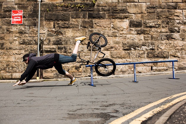 Edinburgh provided S&M with some much-appreciated sunshine today, along with substantially fewer periods of rain. We were stoked. After the rail to wallride challenge went moderately well and the rail ride challenge went not well at all, we rode around Edinburgh all day, finishing off at the concrete park where we were mauled by psychopathic children in search of candy. Aside from that, Fathead did a bunch of tricks, Jim ate 10 apples for some ungodly reason, and now we’re off to Glasgow.
