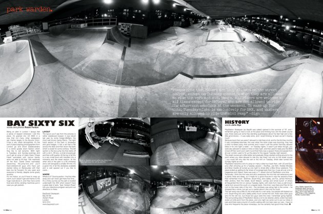 The Baysixty6 skatepark has served the BMX community for a very long time and is still the home for many riders. Check out the Park Warden we did at the London based skatepark, back in March 2008, and be sure to sign the petition/ follow them on Facebook to help save the 13+ year old skatepark.