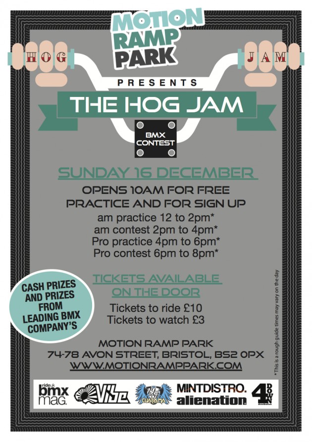 Motion Ramp Park in Bristol presents the Hog Jam. If you’re local to Bristol or not this is going to be worth going down as it will no doubt be a good turn out. Don’t worry, you’ve got a plenty of time to plan a trip there as the jam is on the 16th on Decemeber. For more info head over to the Motion website or check the flyer below.