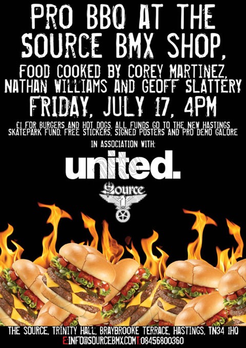 This sounds like a perfect Friday afternoon. The guys at the source are having United pro riders Geoff Slattery, Corey Martinez and Nathan Williams come to Hastings specifically to cook you up some burgers and sausages. Undoubtedly there will be some veggie options too… There will also be some savage sessions going down on the bowl at The Source, if you haven’t seen it yet, check it out here. If you can get there Friday then this isn’t something you’ll want to miss… It’ll be the best start to the weekend.