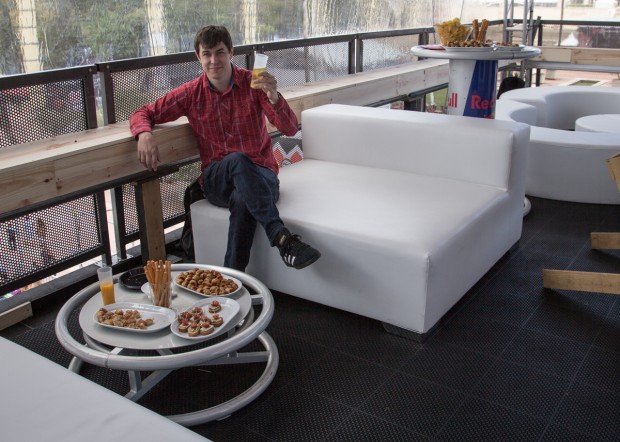 If it’s put there on a plate, I’m going to take it. Red Bull VIP lounge, free beer and nibbles.