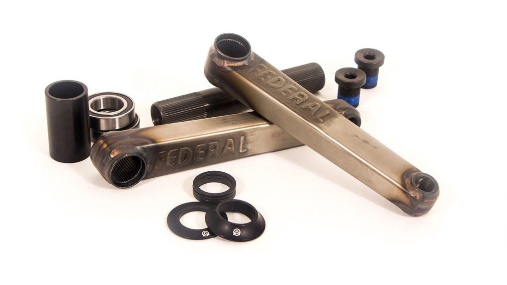 As soon as you set eyes on the new Federal Vice cranks, you can tell they are strong as f***. They’ve been built to handle abuse from the bottom up. Starting with the 24mm spindle, which is 2mm thicker than tradition spindles and makes the cranks noticeably stiffer, especially if you’re in the game of doing big street drops. The spindle has also been machined out, to keep the cranks light.