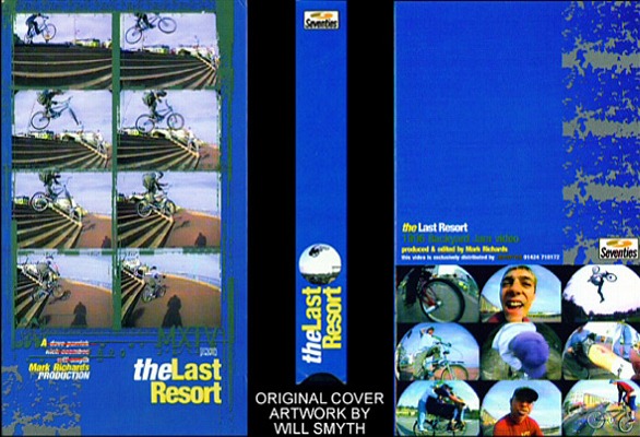 My first BMX video was ‘Last Resort’ by Seventies. I got it as a present from my parents for Christmas, 1996. I’d spent a few weeks looking in Ride UK to choose the video I wanted: either ‘Last Resort’ or ‘Velvet Taxi’ by Jinx. I guess ‘Last Resort’ seemed more relevant to me as, based in the UK, I was already buying products from Backyard and had heard of more of the riders. Upon being presented with the video, I watched it during the afternoon of Christmas day, and over the coming days and weeks, repeatedly. I can still remember most of the sections and music from the video: Shaun Butler and Dave Osato riding to the B52s at the Backyard Jam, The Chasm, Jerry Galley killing the ocean blue metal halfpipes and hips at Leigh-on-Sea skatepark. Dennis Wingham jumping doubles with no seat. Kris Bennett. And Ian Morris’ feeble to barspin which was used as the screengrab in Ride UK.
