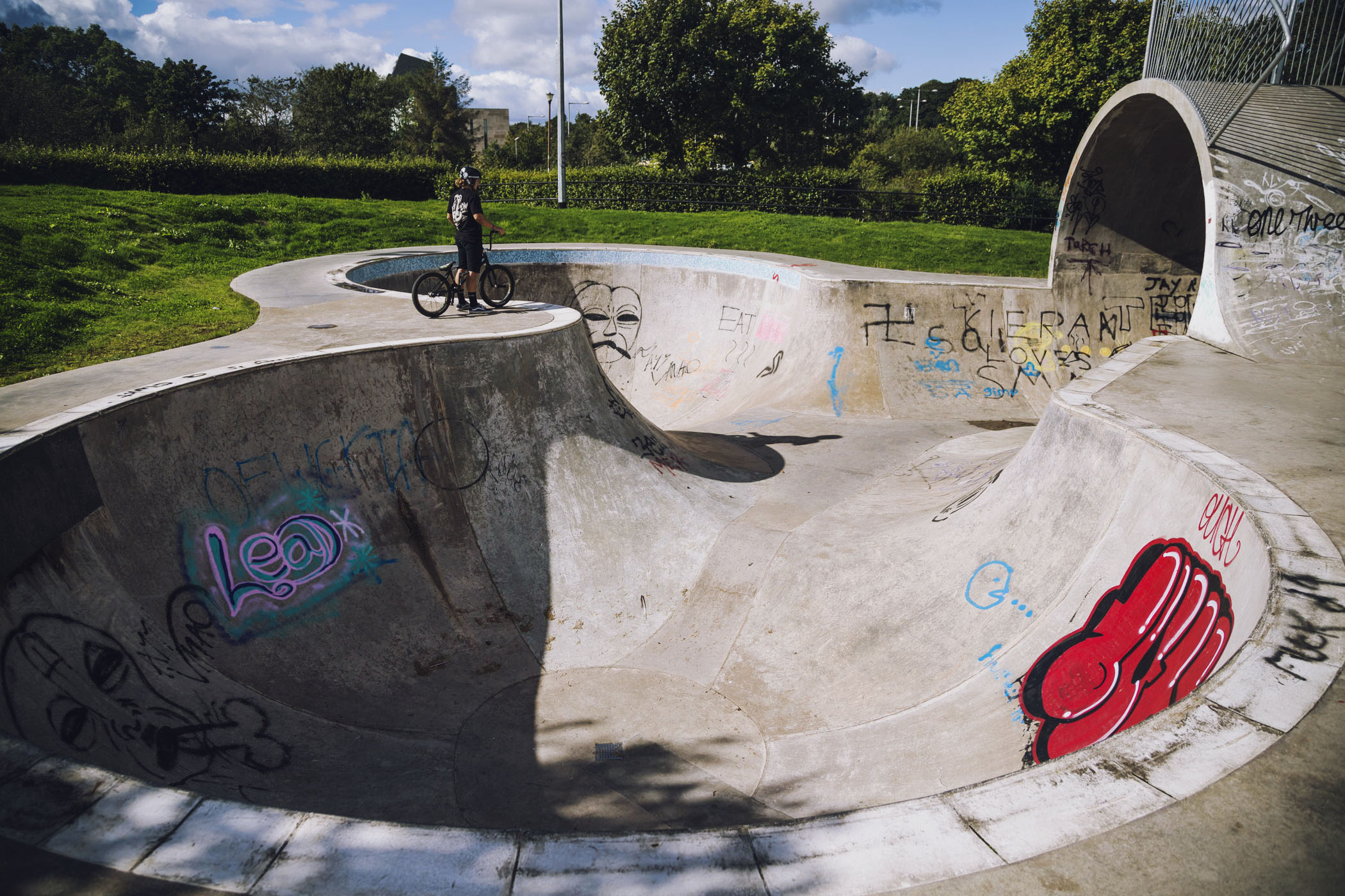 Jason Watts was going to be in the UK to ride for Team Gary Young in the Battle of Hastings, so his stay was just extended by a week and we were ready to hit the road with the Haro UK crew of Angus Gough, Brad McNicol and Dean Cueson. I love going on trips with these guys – they’re positive, talented, easy going and know how to have a laugh. With this crew in mind, Rob had put together a map of skateparks, with plenty to hit in five days, covering a lot of ground! I knew we had chosen many with Jason in mind, such as Livingston, and had some good easy session parks along the way too.