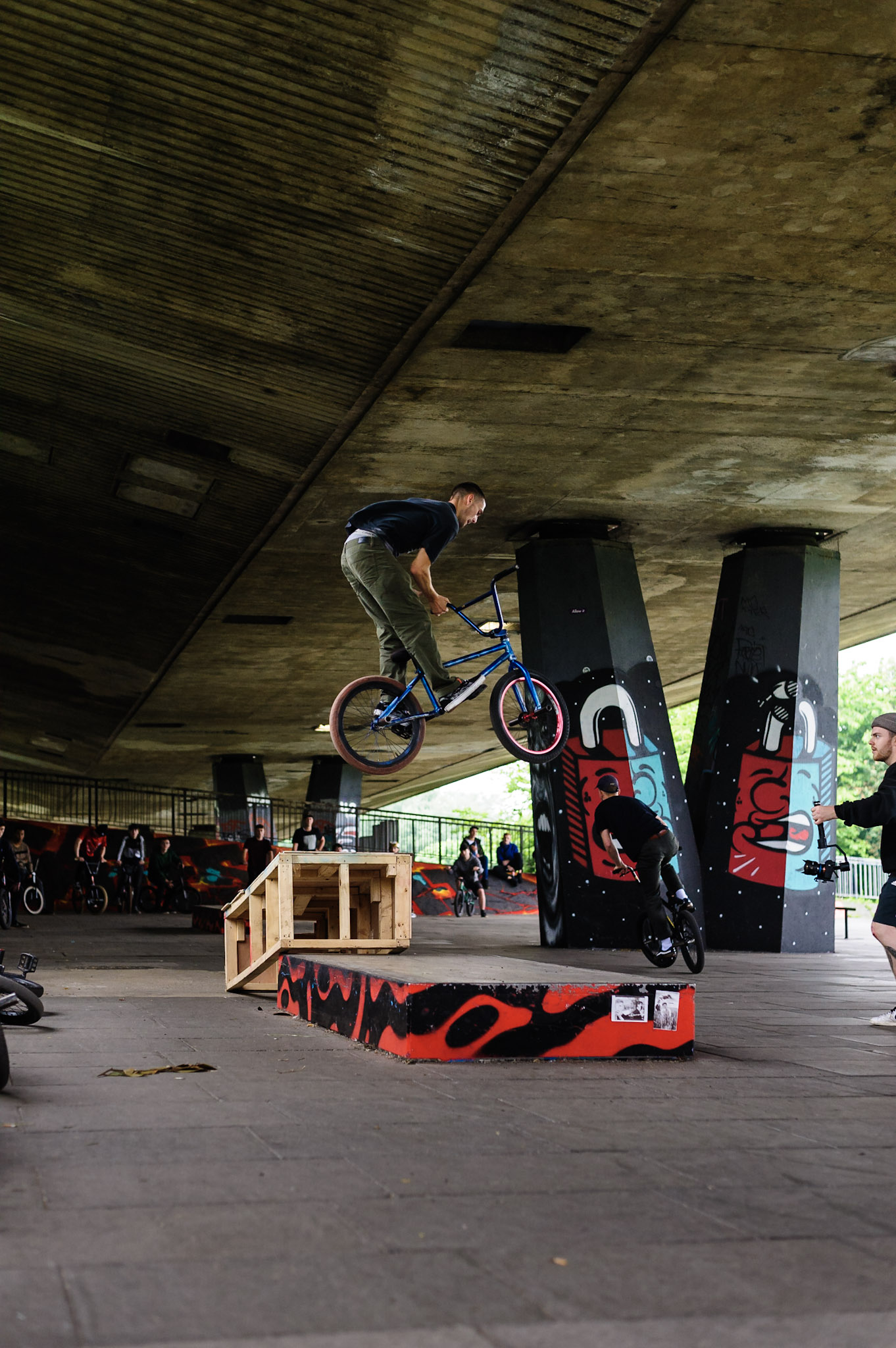 As time went on; more and more riders flooded into 5 Bridges. A few late arrivals who didn’t receive the news about the location change until last minute turned up looking pretty beat after a lengthy pedal through town. It took no time for shit to get poppin’ – It was a chilled vibe at first, but then Danny Heron dropped the first banger; a manny to 180 down the sketchiest rail-to-rail setup I’ve ever seen. Pulled clean as a whistle!