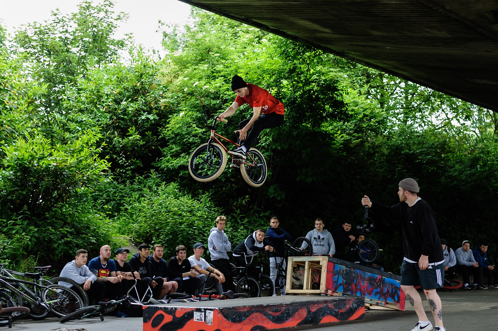 It’s a bit of a ‘hope for the best’ kind of situation, especially when there’s a convoy of 100+ BMXers trying to park in the same place. Nevertheless we managed to get a decent spot and began unloading the bikes.