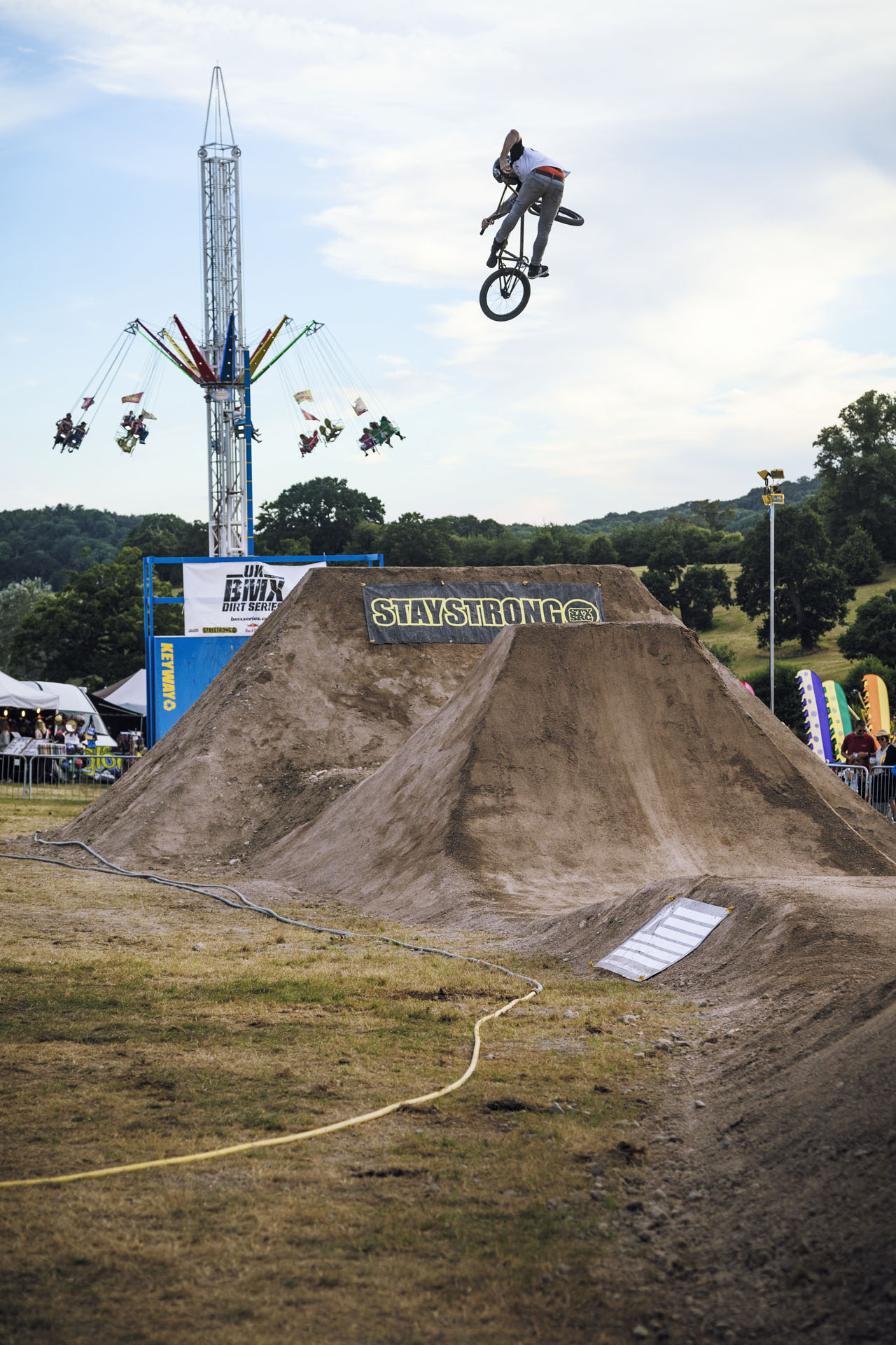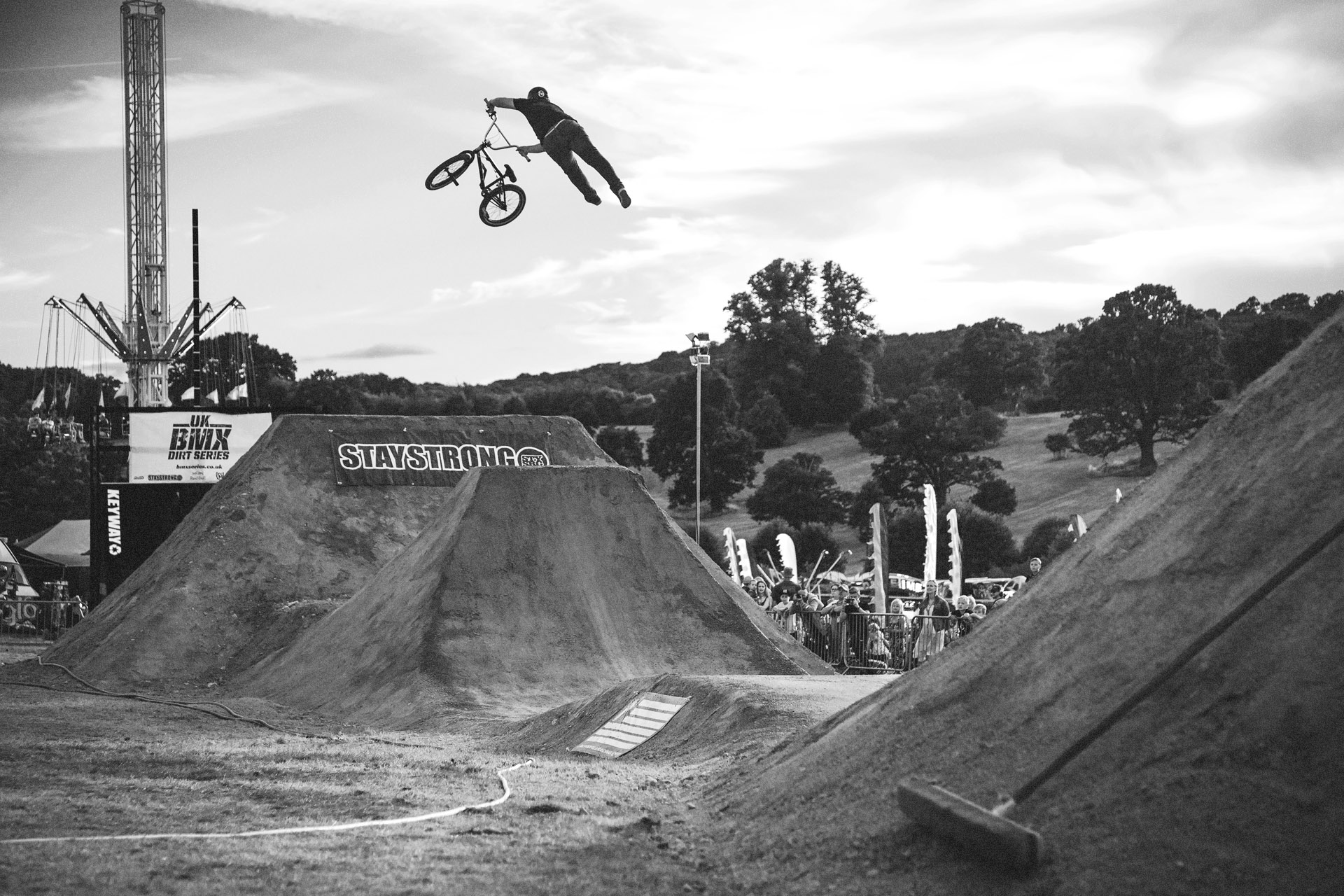 The setting for the final was pretty special – at a music festival. Lakefest is a very family-friendly festival at Eastnor Castle in Gloucestershire, filled with happy, open-minded humans who want some entertainment. An unlikely but pretty much perfect setting for a BMX event, with more than enough of a crowd to create an atmosphere, eager to get the riders pumped up. MC John Wood handled the crowd perfectly, getting them to chant B-M-X, explaining tricks and managing to keep the language child-friendly… As you’ll hear in the video.