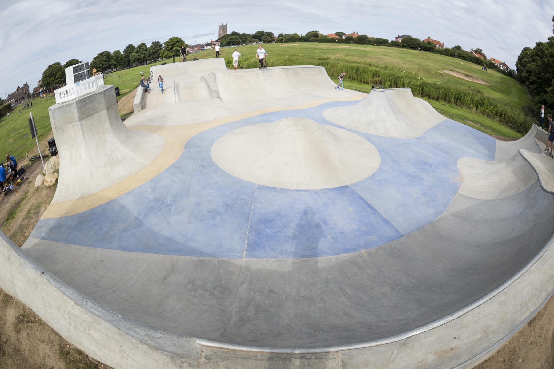 There are a number of good concrete skatepark companies out there, so when a council opens up their skatepark budget to proposals from UK skatepark designers, they’re all battling against each other to win the job. Showing the councils a design with some kind of theme they can relate to – like the elements of a seaside town – was Maverick‘s clever way of increasing the chance of securing the job, while also linking the park to its surroundings.
