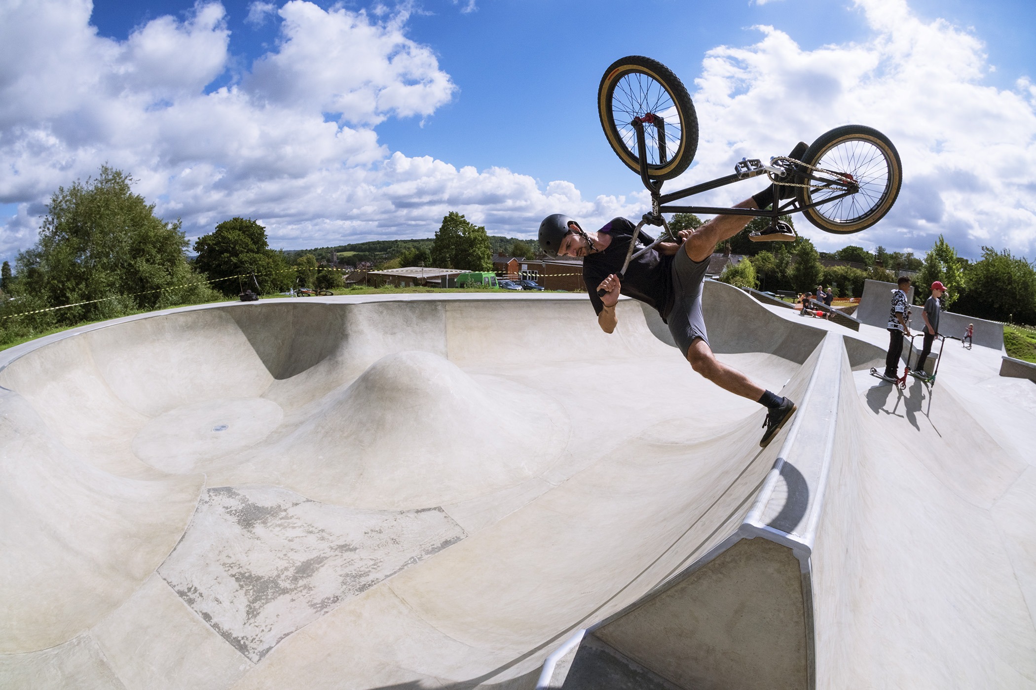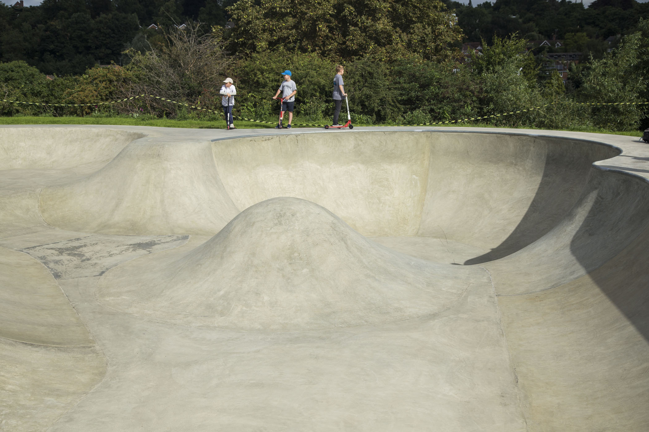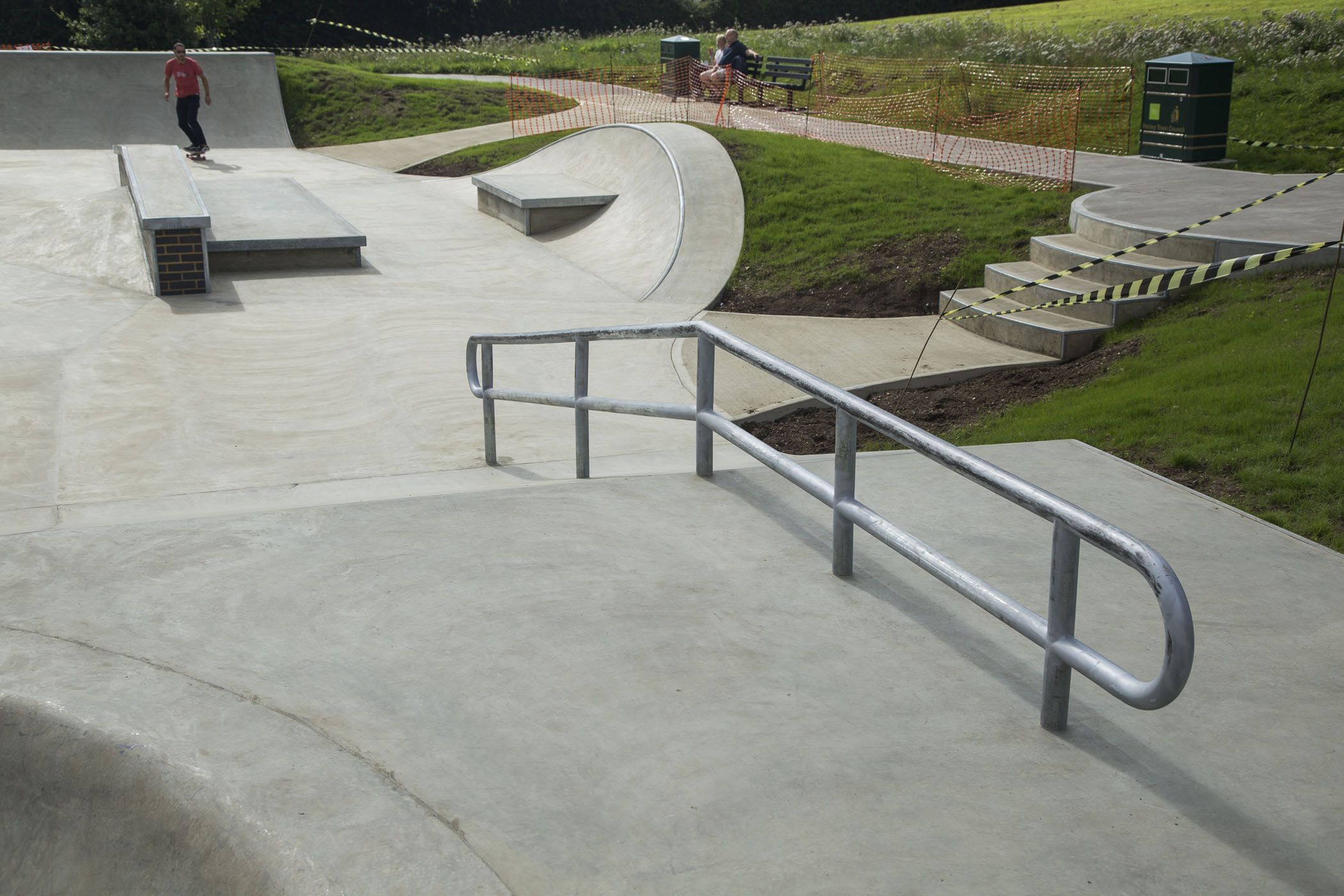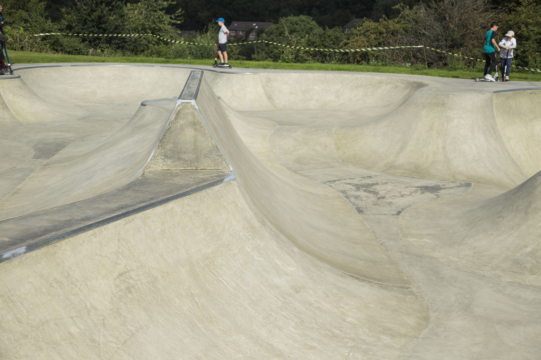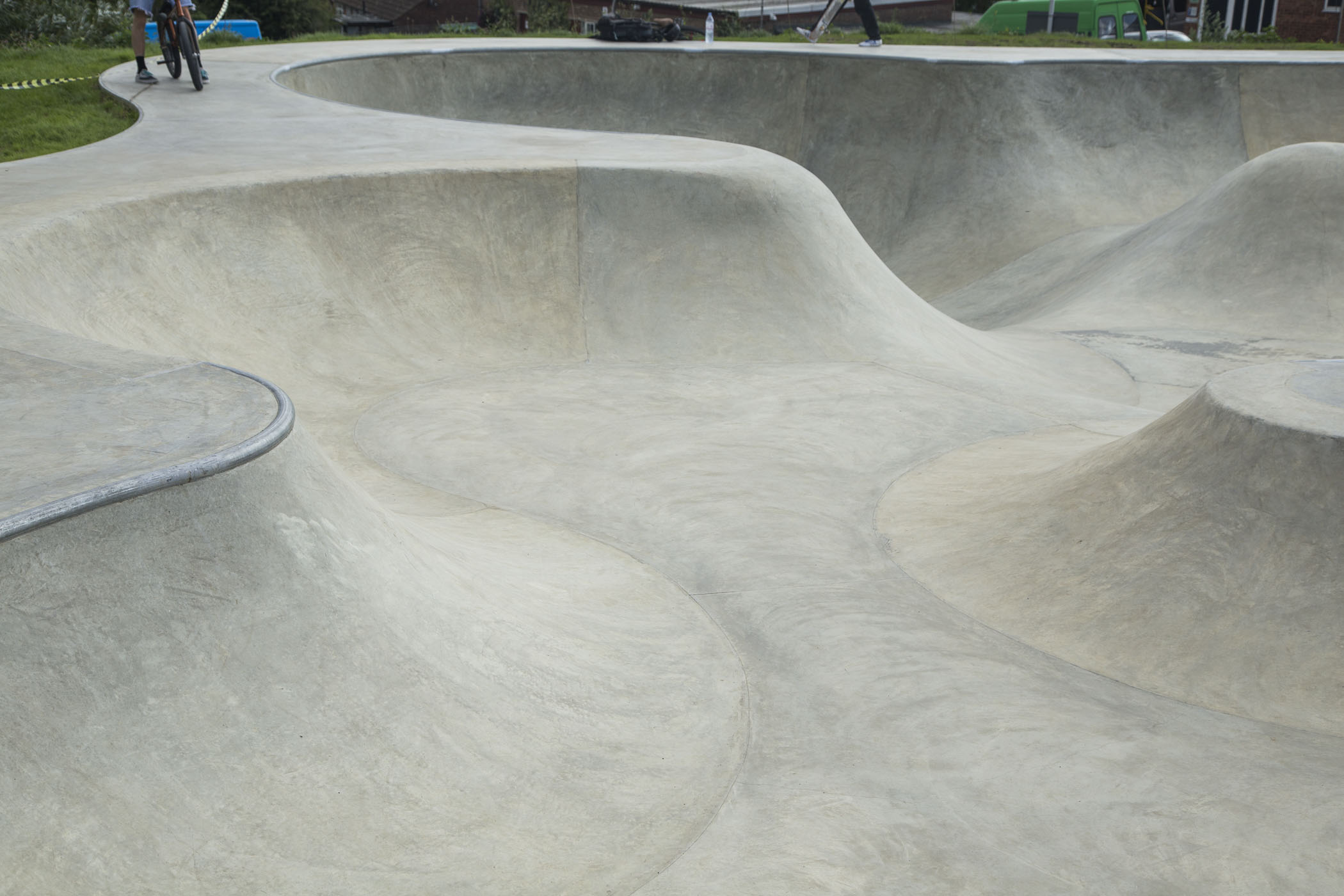 The skatepark is an interesting design. I’m glad to say the concrete is nice and grippy. Very good news!
