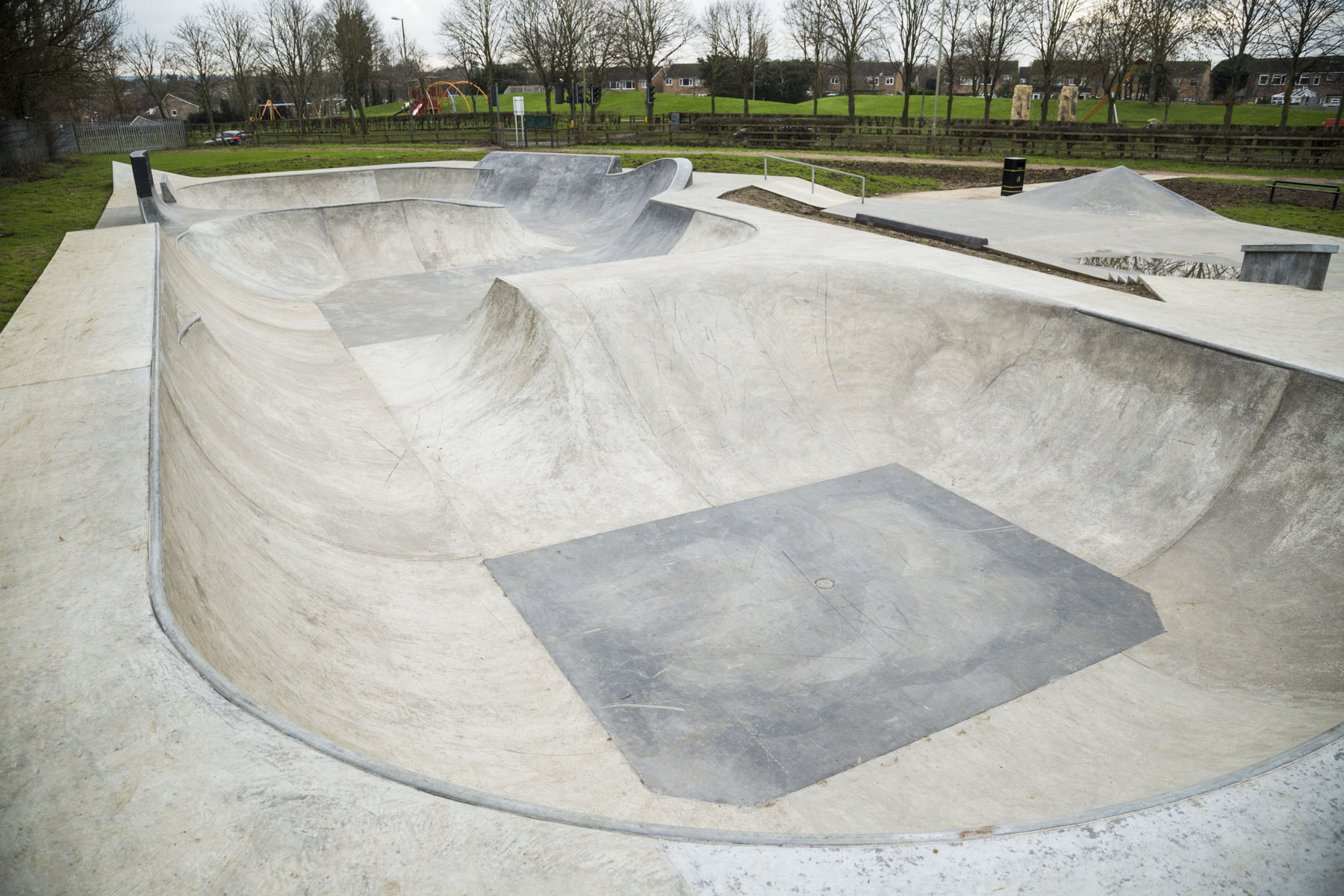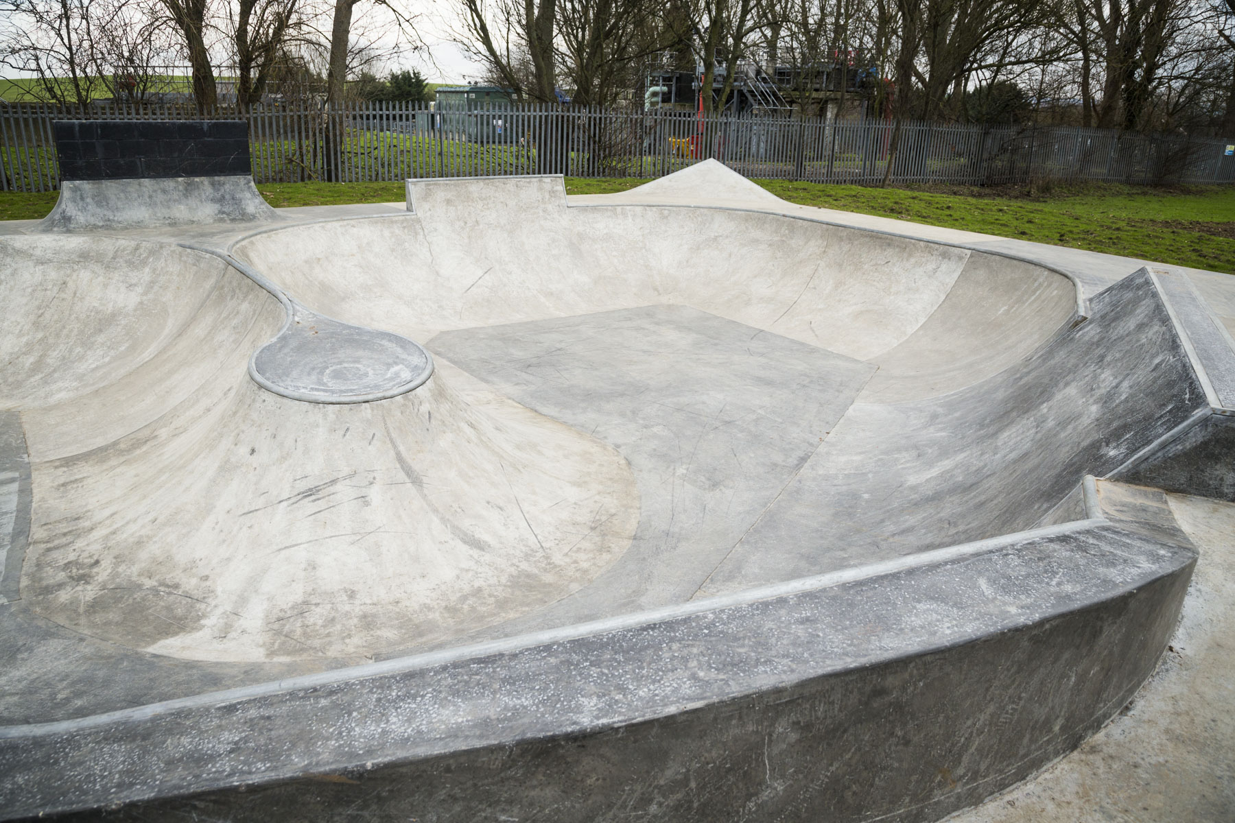 A Wheelscape effort, it features a kind of bowl–park hybrid containing a jumpbox, trannied on three sides. The bowl itself has a pretty wide range of transitions, with the shallow end feeling quite nibbly, the deep end feeling decent-sized, plus variations and extensions everywhere else. That’s what drew me to the park – the many features of the bowl.